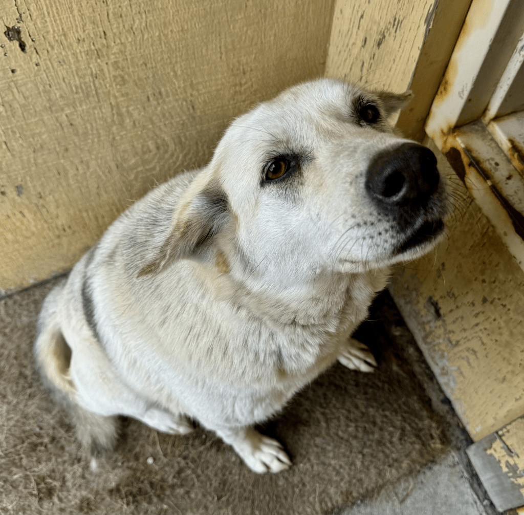 The School Greeter below, who remained perched on the porch & welcoming, was sweet and docile.
