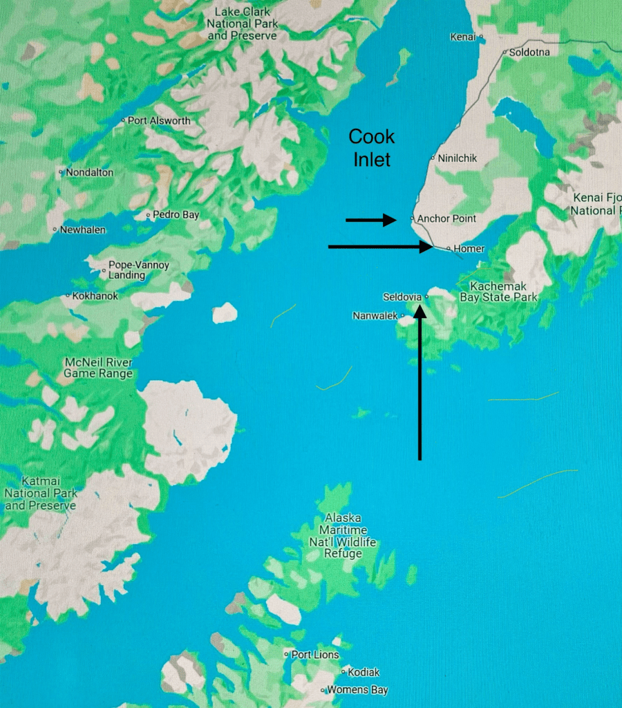 Nearing the tip of the Kenai Peninsula, is Anchor Point & Homer with Seldovia, Alaska just across the Kachemak Bay.