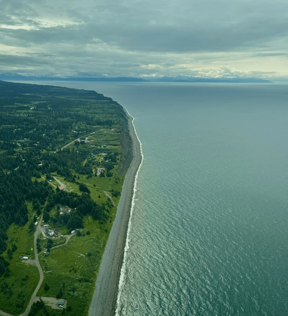 Below: overflying the beach from Anchor Point wrapping around toward Homer & Seldovia
