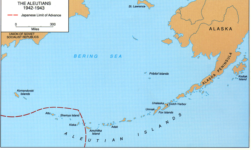 From a military historical standpoint, there were battles during WWII that took place in the Aleutian’s with the Japanese occupations of Kiska, and perhaps more famously, Attu Island. In 1942 – these were one of only two invasions of the United States during WWII (the second being the Philippines, Guam, and Wake Atoll/Pacific territories of the US).