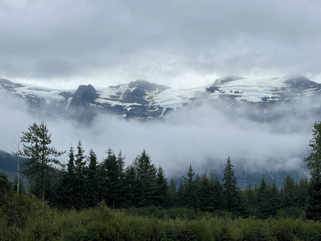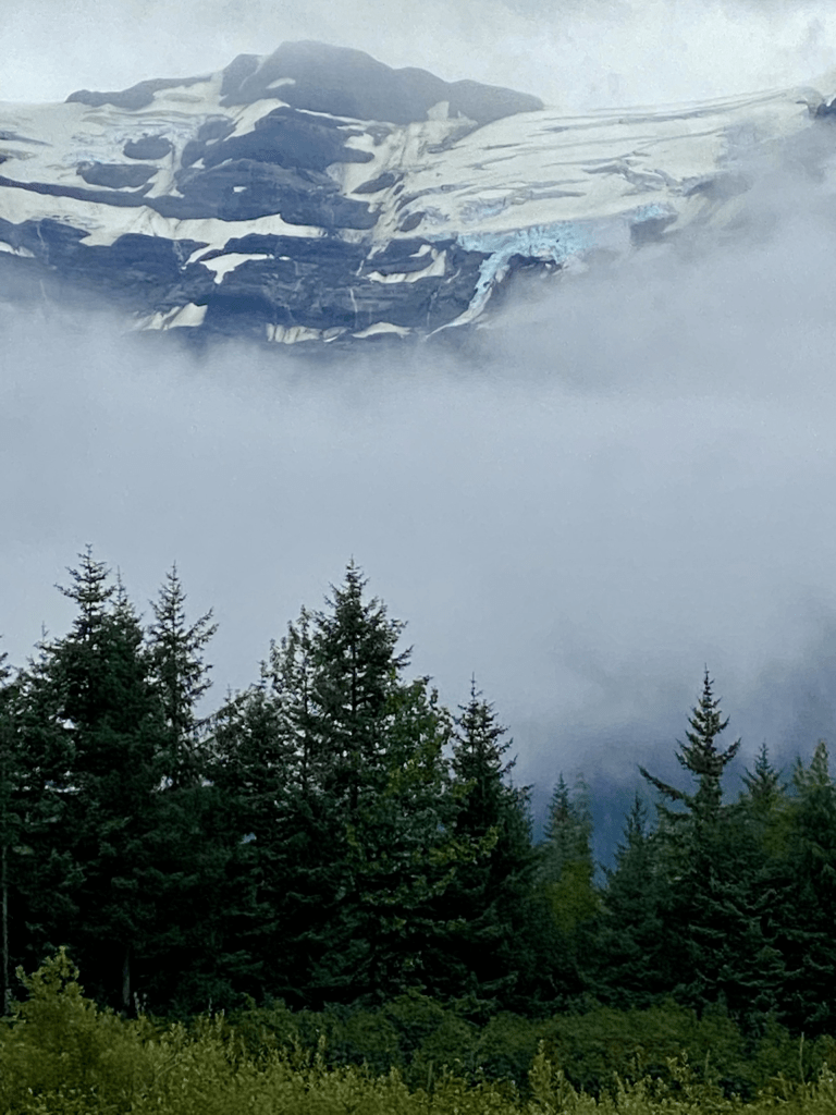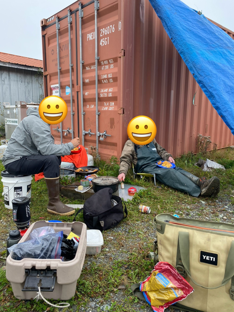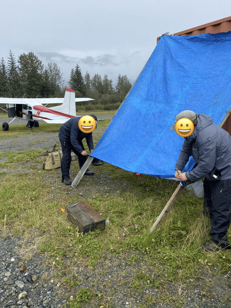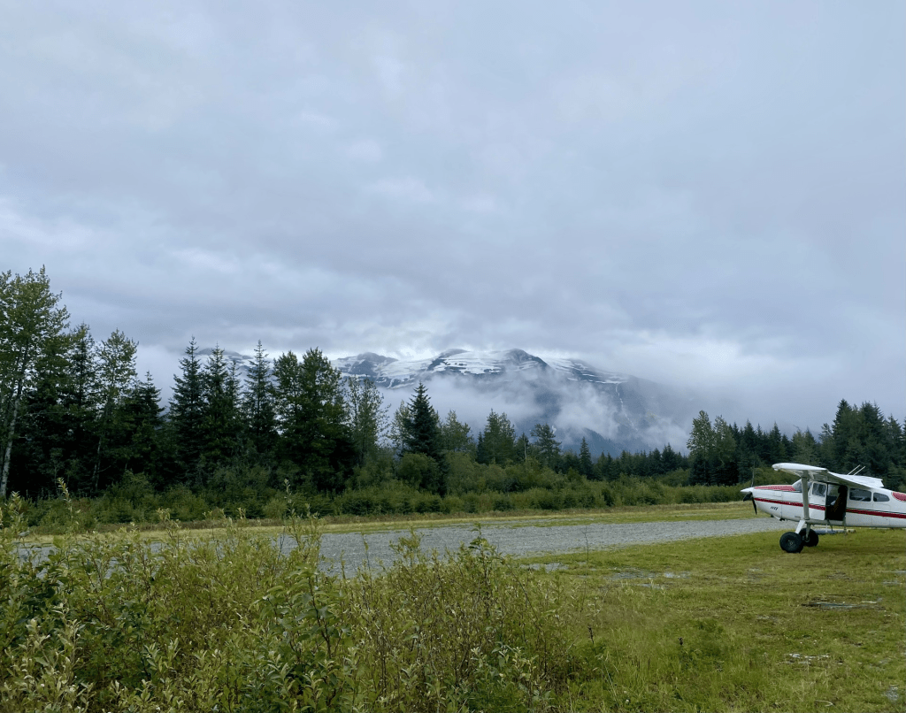 We spent time walking up to a nearby logging area and met a few of the young men working there and got a feel for what it is like for them to work in such a place. They were quite friendly and helpful with their wi-fi signal so we could re-assess the weather before attempting to fly out again. As we awaited more favorable flying conditions, we sat between the Icy Bay runway and the coastline in the cold rain (with our adequate gear so was quite pleasant) and enjoyed the views and the experience. Mac and cheese with chicken fingers made it even more fun! No plain ole Cliff Bars for us! We know how to camp!