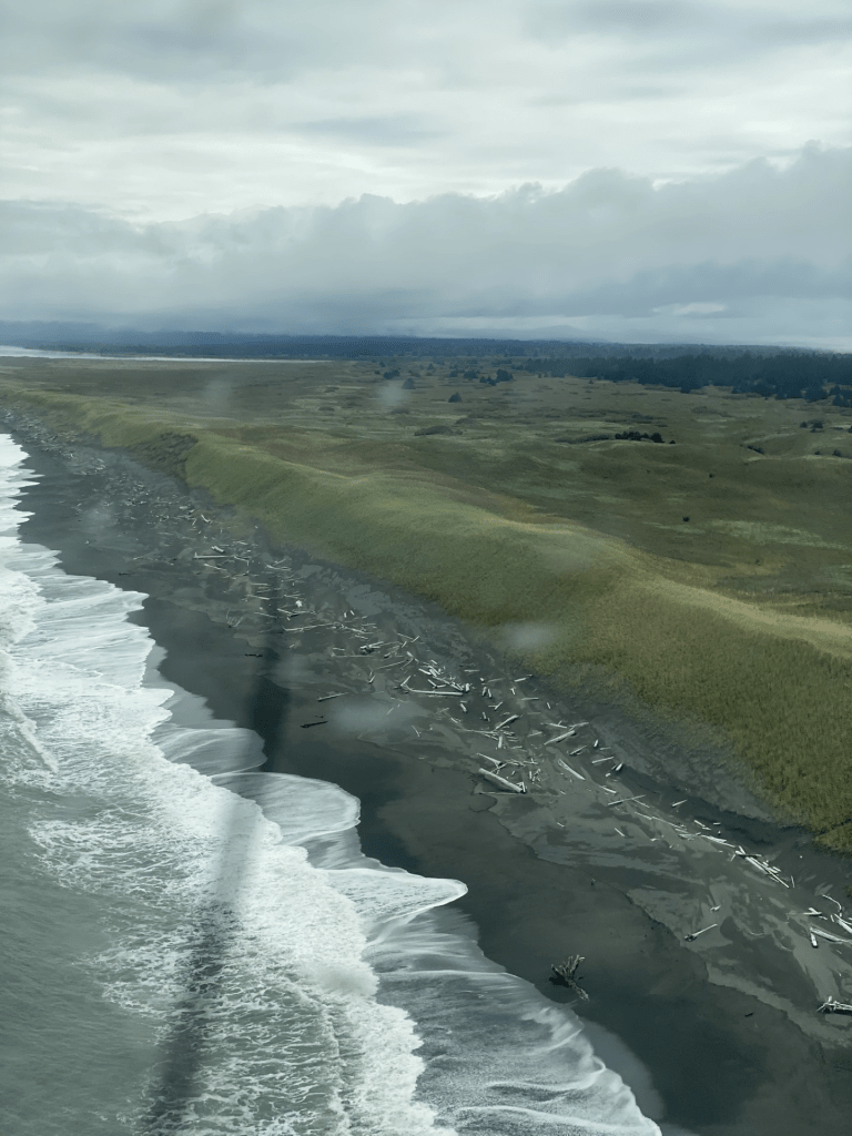 The closest town is Yakutat which offers lodging; guided tours for fishing, beach combing, wildlife watching and kayaking; a restaurant with a bar; and beach camping. The airport is friendly, and we were greeted when we landed in the cold rain with warm chocolate chip cookies and nice people to help refuel the planes and tie down.