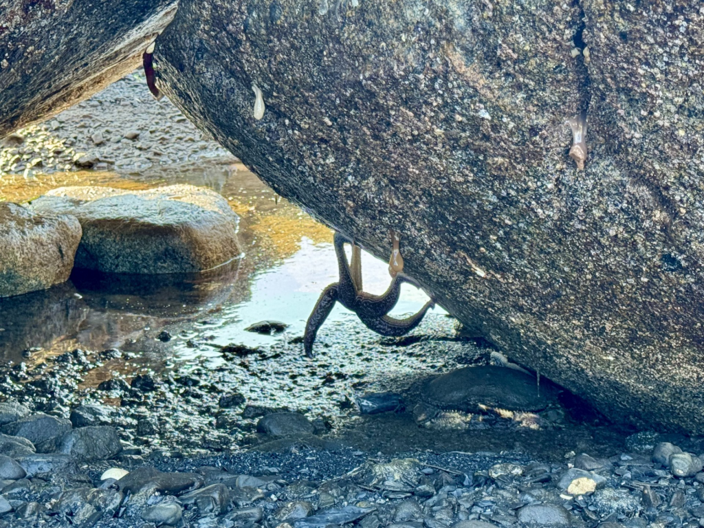 Below are other random pics from around the coastline of Old Harbor – marine invertebrates including starfish, anemone and a rather HUGE lurking Dungeness crab!